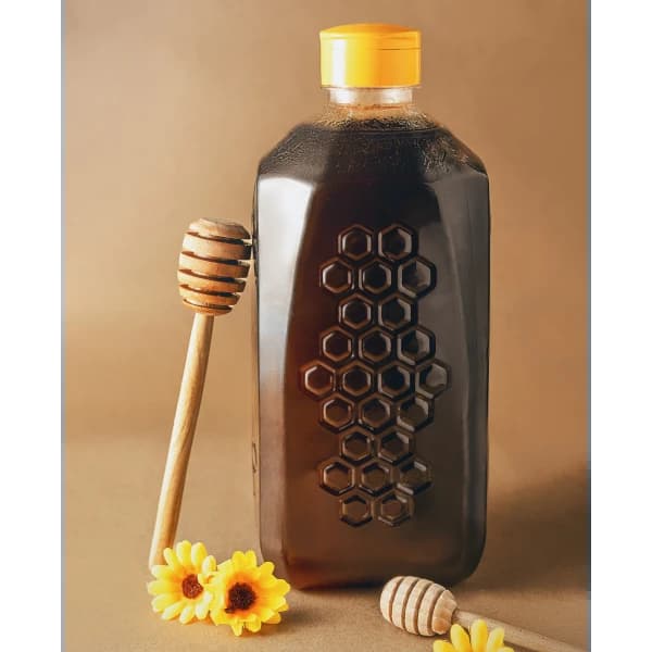 It is one of the methods used in packing honey. It is a large plastic container for preserving honey that can be compressed. It can accommodate 2.3 kg of honey. Any kind of honey can be packed according to demand. However, the most desirable honey is flower honey, which is honey that is collected from a mixture of several It blooms throughout the year. It is a distinctive honey. It has several colors, some of which are light and dark. It has a distinctive flavor. It is honey that can crystallize in cold weather.