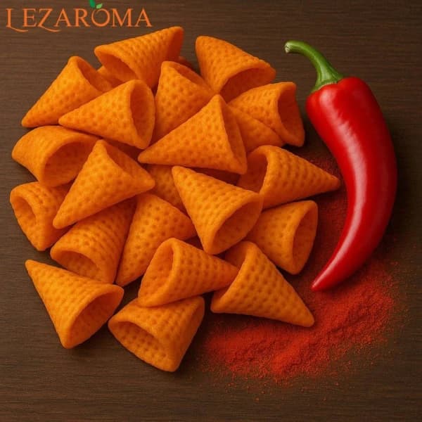 Golden crunchy cones coated with Lezaroma's hot pepper powder, giving you a balanced heat and a bold taste that enhances the flavor sensation with every bite. Ideal for snack enthusiasts seeking excitement, ensuring food manufacturers deliver a memorable imprint on consumers.