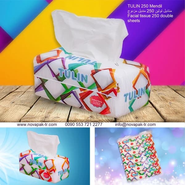 tulin facial tissue 250 - facial tissue paper , 2ply , sheets size 20*20cm , 250sheets apprx 250gr, high quality