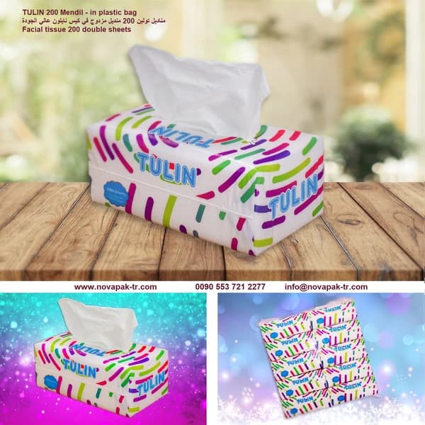 tulin facial tissue 200 - facial tissue paper , 2ply , sheets size 20*20cm , 250sheets apprx 200gr, high quality