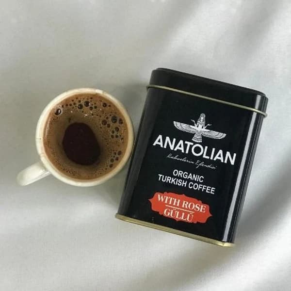with rose - 100g - Turkish Coffee with Rose - 100g Turkish Coffee with Rose combines the rich flavor of traditional Turkish coffee with a touch of rose, creating a unique and aromatic taste experience. Product Features: Flavor: Traditional Turkish coffee flavor with a hint of rose. Roast: Medium roasted to preserve natural flavors with a rose essence. Grind: Finely ground to provide a rich and balanced taste with a hint of rose. Usage: Can be prepared using traditional Turkish coffee brewing methods. Aroma and Taste: Offers a distinctive and aromatic taste with rose flavor. Packaging: 100 grams package to keep the coffee fresh and easy to use. Enjoy an exceptional coffee experience with Turkish Coffee with Rose.