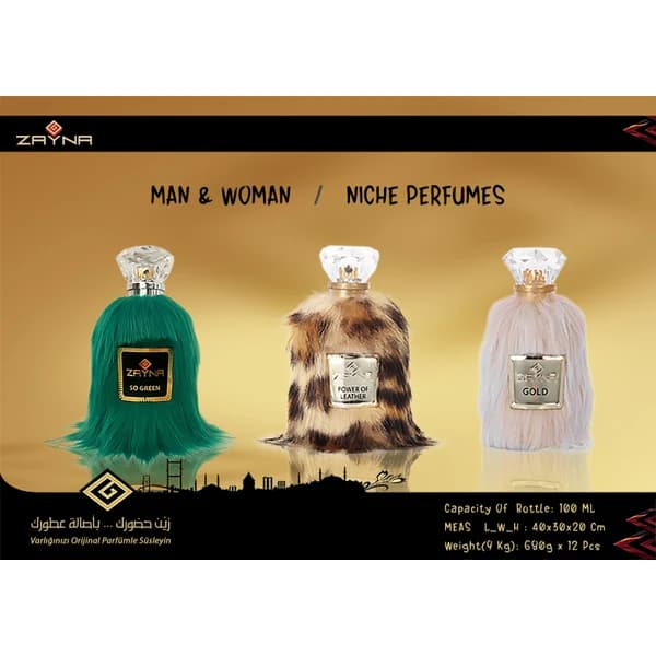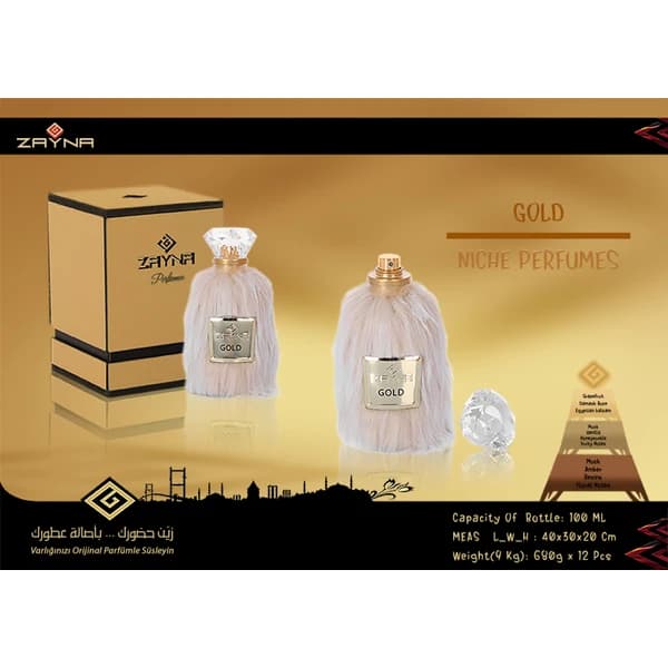 zayna gold 100 ml niche perfume - Unisex perfume in a special bottle of Zayna, covered with fur, with a luxurious box